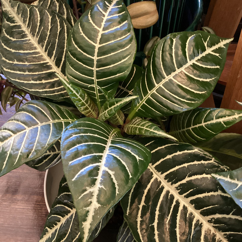 A striking, compact, tough plant with glossy leaves of dark green and striped with