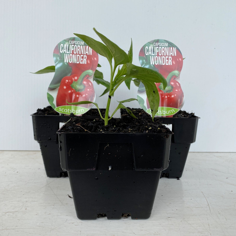 The ‘Californian Wonder’ is the most popular variety of capsicum in Australia. Large thick walled, sweet variety that produces lots of fruit. Glossy deep green turning red when mature. Grows well in pots.