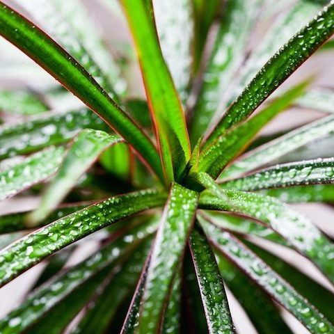 The thin leaves are linear and a deep, glossy green color with red edges; typically 30-90 cm long and 2-7 cm broad. It is a popular houseplant that needs little attention, with several cultivars available with the leaves variegated with red or pale yellow. It is more tolerant than most plants of dry soil and irregular watering, though liable to root decay in permanently wet soil. Because it requires minimal care it is very popular in offices where the constant heat and light suits its growing requirements.