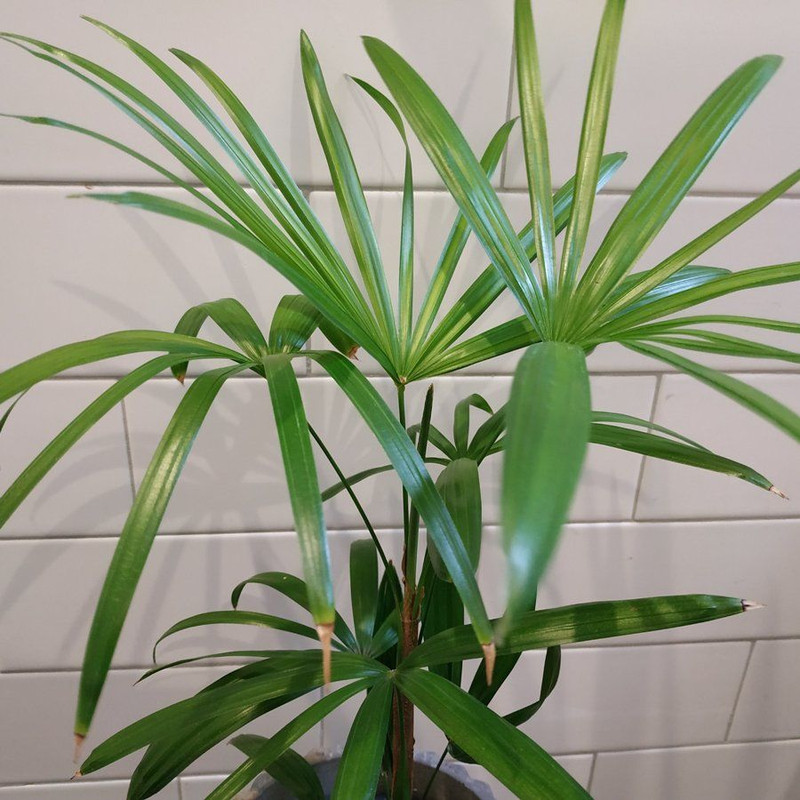 Lady palm (Rhapis humilis) shows off fan-like dark green leaves, making this favorite a stand out from other palms. Place in a bright area of the home. Looks amazing against a white wall which will accentuate the architectural foliage.