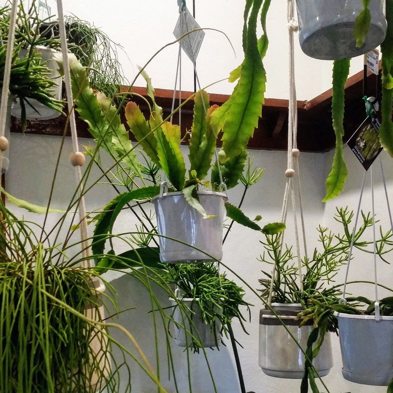 Rhipsalis are a group of cactus that have developed to survive in forests, many grow in trees hanging from branches like ferns. Most varieties flower in the spring with white or cream flowers, some are orange and pink.